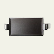 This set includes our carbon steel griddle and a stainless steel smasher. The griddle is designed to provide a crispier result and better caramelization of the surface of meats and vegetables. This means you'll achieve a deeper and more intense flavor in everything from steaks to grilled asparagus. The raised handles offer increased comfort when lifting the griddle and smasher from the induction stove to the grill, campfire, or directly to the table for serving.